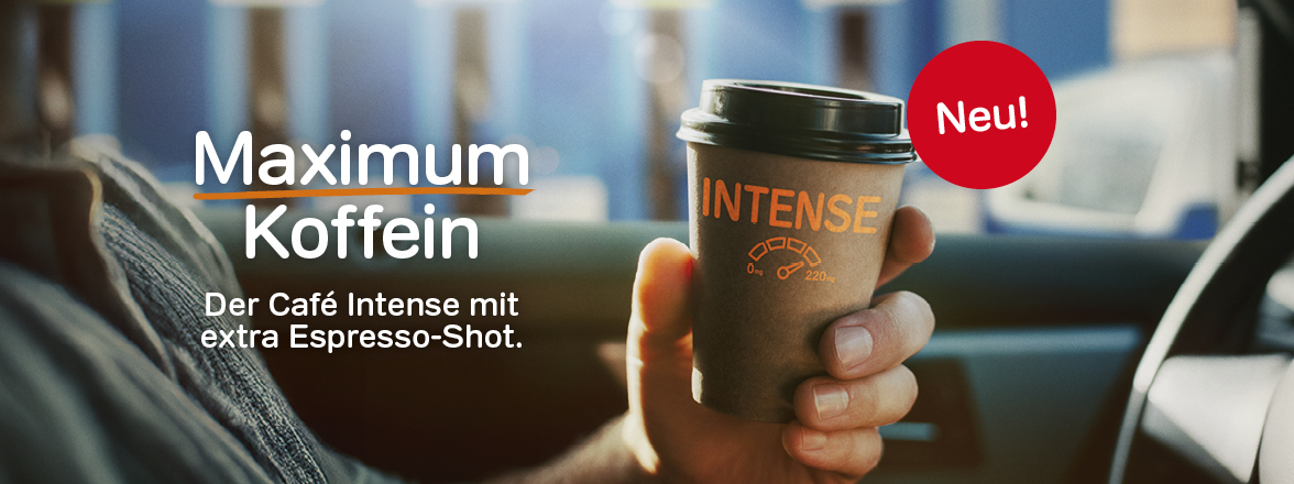 Frisch im Sortiment: Café Intense – der starke Kaffee-Kick bei Aral. Genieße unterwegs unseren vollmundigen Café Crème mit extra Espresso-Shot und hol dir die Energie, die dich weiterbringt!
